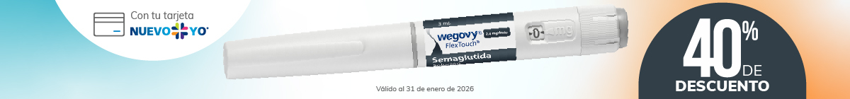 Wegovy FlexTouch 2.4 mg (3mL de solución) es una solución médica efectiva para la obesidad o el sobrepeso, es el primer tratamiento y único medicamento inyectable aprobado para perder peso y no volver a recuperarlo. Indicado en adultos con obesidad o sobrepeso con al menos una condición relacionada, como diabetes tipo 2 o hipertensión, está aprobado para reducir el riesgo de eventos cardio vasculares graves, junto con una dieta baja en calorías y un aumento de la actividad física. Wegovy contiene semaglutida, un análogo del GLP-1 (péptido similar al glucagón) que actúa en el cerebro reduciendo el apetito y aumentando la sensación de saciedad. A diferencia de las pastillas tradicionales para bajar de peso, Wegovy se administra mediante una inyección semanal subcutánea, lo que facilita su uso y mejora la adherencia al tratamiento supervisado por un médico